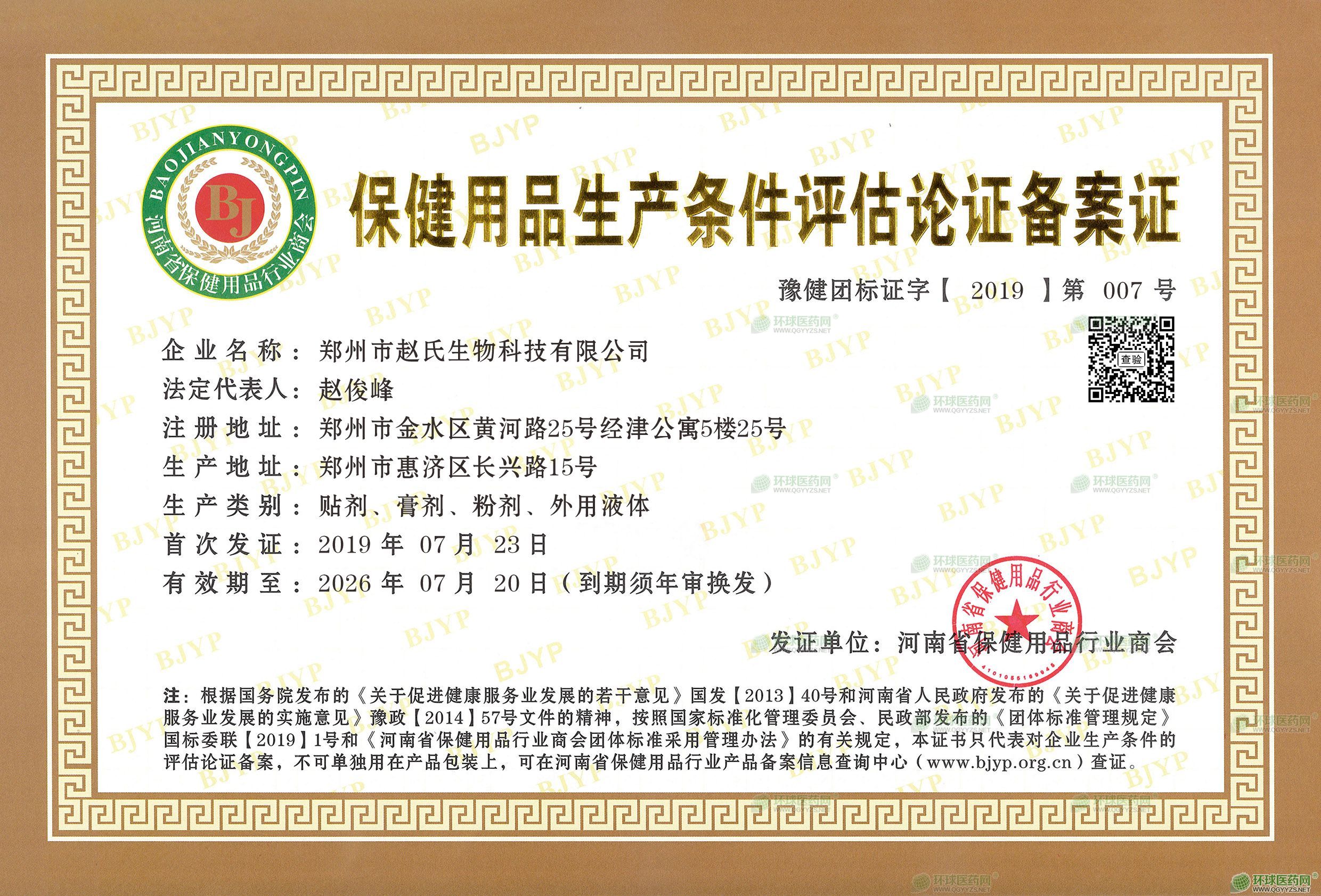 保健用品生产条件评估论证备案证