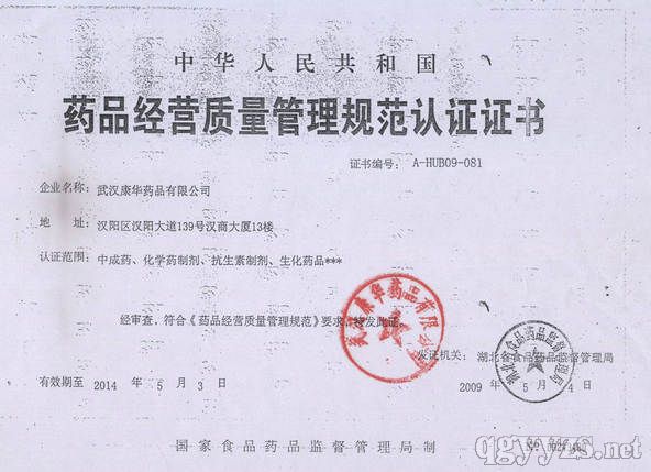 药品经营质量管理规范认证证书