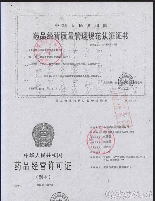 药品经营质量规范认证证书
