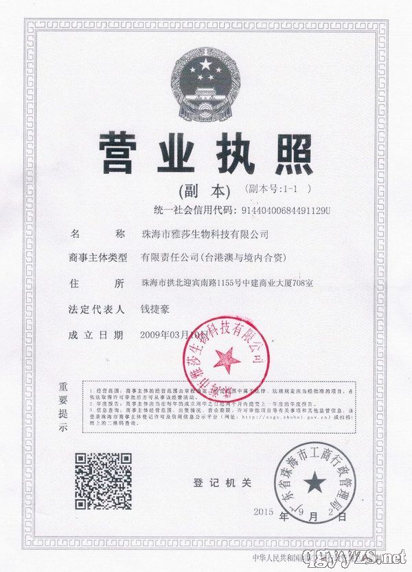 珠海雅莎生物科技股份有限公司