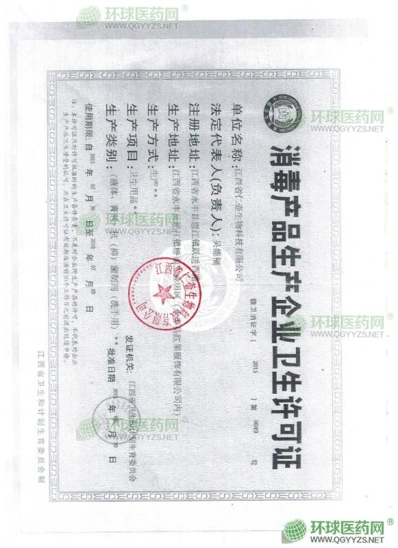 消毒产品生产企业卫生许可证
