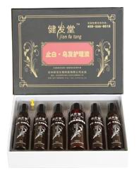 - 健发堂止白乌发护理液从人参、三七、虫草、首乌、侧佰叶、白芷川芎、北芪、旱莲草等植物提取精华,可补充合成黑色素的物质,提高黑色素细胞中酪氨酸酶的活性,控制白发生长,使头发颜色由黄、白逐渐变成黑发。