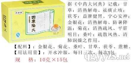 《配料》:金银花;菊花;桑叶:甘草;茯苓;蔗糖。