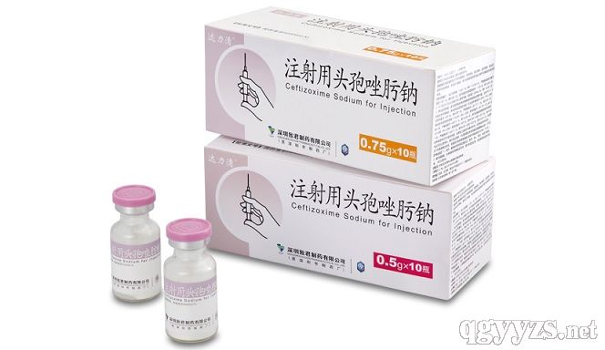 - 通用名称:注射用头孢唑肟钠 英文名称:Ceftizoxime Sodium for Injecti0n商品名称:达力清 【主要成分】头孢唑肟钠【性 状】 白色或淡黄色结晶性粉末。【药理作用】本品属第三代头孢菌素,具广谱抗菌作用,对多种革兰阳性菌和革兰阴性菌产生的广谱(内酰胺酶(包括青霉素酶和头孢菌素酶)稳定。本品对大肠埃希菌、肺炎克雷伯菌、奇异变形杆菌等肠杆菌科细菌有强大抗菌作用,铜绿假单胞菌等假单胞菌属和不动杆菌属对本品敏感性差。头孢唑肟对流感嗜血杆菌和淋病奈瑟球菌有良好抗菌作用。本品对金黄色葡萄球菌和表皮葡萄球菌的作用较、第二代头孢菌素为差,耐甲氧西林金黄色葡萄球菌和肠球菌属对本品耐药,各种链球菌对本品均高度敏感。消化球菌、消化链球菌和部分拟杆菌属等厌氧菌对本品多呈敏感,艰难梭菌对本品耐药。本品作用机制为本品通过抑制细菌细胞壁粘肽的生物合成而达到杀菌作用。【适 应 症】敏感菌所致的下呼吸道感染、尿路感染、腹腔感染、盆腔感染、败血症、皮肤软组织感染、骨和关节感染、肺炎链球菌或流感嗜血杆菌所致脑膜炎和单纯性淋病。【用法用量】1.成人常用量:一次1~2g,每8~12小时1次;严重感染者的剂量可增至一次3~4g,每8小时1次。治疗非复杂性尿路感染时,一次0.5g,每12小时1次。 2.6个月及6个月以上的婴儿和儿童常用量:按体重一次50mg/kg,每6~8小时1次。 3.肾功能损害者:肾功能损害的患者需根据其损害程度调整剂量。在给予0.5~1g的负荷剂量后,肾功能轻度损害的患者(内生肌酐清除率Clcr为50~79ml/**)常用剂量为一次0.5g,每8小时1次,严重感染时一次0.75~1.5g,每8小时1次;肾功能中度损害的患者(Clcr为5~49ml/**)常用剂量为一次0.25~0.5g,每12小时1次,严重感染时一次0.5~1g,每12小时1次;肾功能重度损害需透析的患者(Clcr为0~4ml/**)常用剂量为一次0.5g,每48小时1次或一次0.25g,每24小时1次,严重感染时一次0.5~1g,每48小时1次或一次0.5g,每24小时1次。血液透析患者透析后可不追加剂量,但需按上述给药剂量和时间,在透析结束时给药。本品可用注射用水、氯化钠注射液、5*葡萄糖注射液溶解后缓慢静脉注射,亦可加在10*葡萄糖注射液、电解质注射液或氨基酸注射液中静脉滴注30**~2小时。【贮 藏】密闭,在凉暗干燥处保存。【分 子 式】C13H12N5NaO5S2【分 子 量】405.38【规 格】0.5g*600支【批准文号】国药准字H44022960【生产企业】深圳致君制药有限公