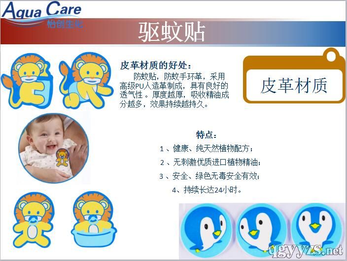 - 驱蚊贴由粘贴层、驱蚊层和隔离层组成。粘贴层为粘合剂;驱蚊层为添加了香茅油的非织造布或棉布;隔离层采用聚乙烯薄膜或离型纸制成。