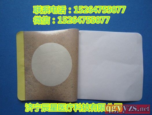 产品结构:无纺布、热熔胶和离型纸组成。根据客户需求可以加防渗膜、防渗圈。替代传统的牛皮纸膏药底布