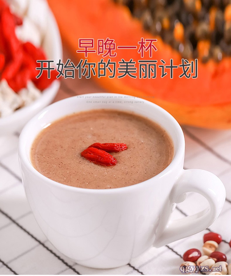 - 配料:赤小豆、薏苡仁、燕麦、白芝麻、芡实、山药、鸡内金、茯苓、莲子、大枣、葛根、枸杞子、桑椹、百合、山楂