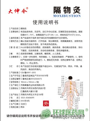 - 确认报装无破损后,打开包装,取出隔物灸,将隔离膜撕去,按照传统隔物灸疗法贴于患处,至不再发热后更换