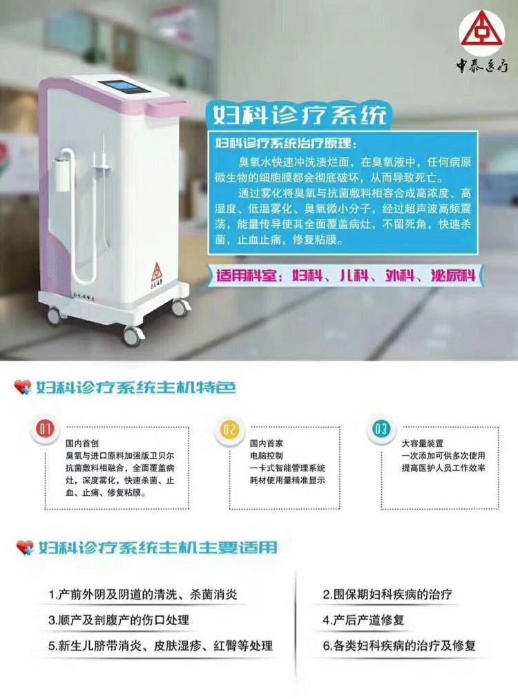 优势:全国没有竞品,集超声雾化臭氧冲洗,液体生物辅料五维疗一体,使用确切,利润高