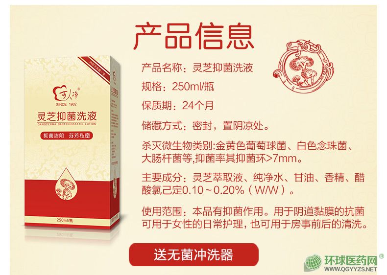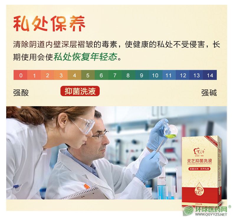 产品是灵芝萃取液等名贵中草药提取物萃取而成,能有效抑制和杀灭阴道内外的白色念珠球菌、大肠杆菌、金黄色葡萄球菌、绿脓杆菌,同时促进伤口的愈合,预防或消除炎症,加速病变部位恢复。