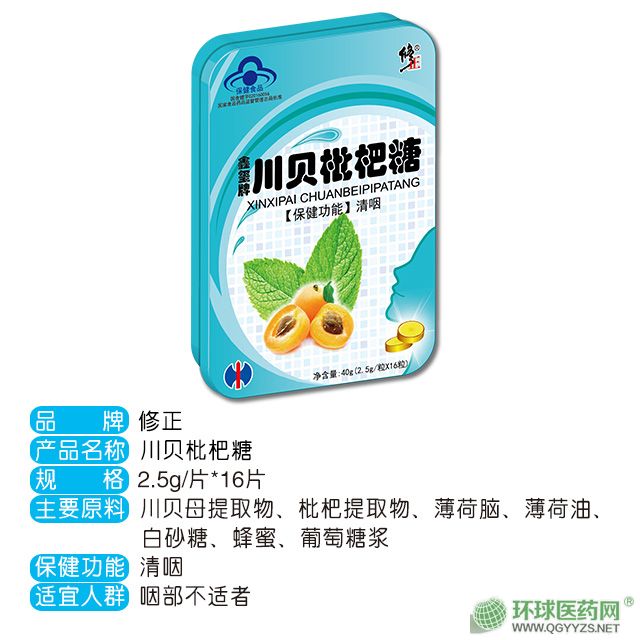 - 本品是以川贝母提取物、枇杷提取物、薄荷脑、薄荷油、白砂糖、蜂蜜、葡萄糖浆为主要原料制成的保健食品,经动物和人体试食功能试验证明,具有清咽的保健功能。