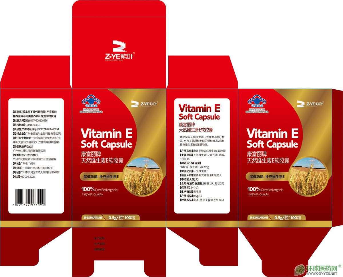 紫叶康富丽牌天然维生素E软胶囊