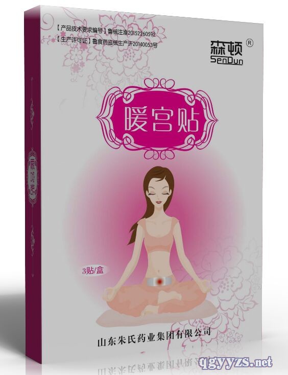 - 确认包装无破损后,打开包装,取出暖宫贴,将贴剂的隔离膜撕去,贴于患者下腹正中脐下三指对应的“气海穴”的内裤外侧,每24小时更换一次,流产连续使用5-10天;顺产连续使用10-15天;剖宫产连续使用15-20天。