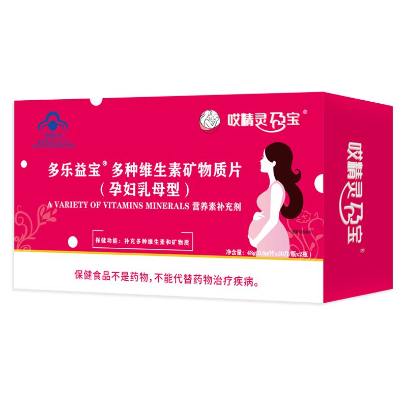 - 哎精灵孕宝多种维生素矿物质片(孕妇乳母型)60粒;蓝帽(孕妇乳母型)保健功能:补充多种维生素和矿物质;适宜人群:需要补充多种维生素和矿物质的孕妇、乳母;