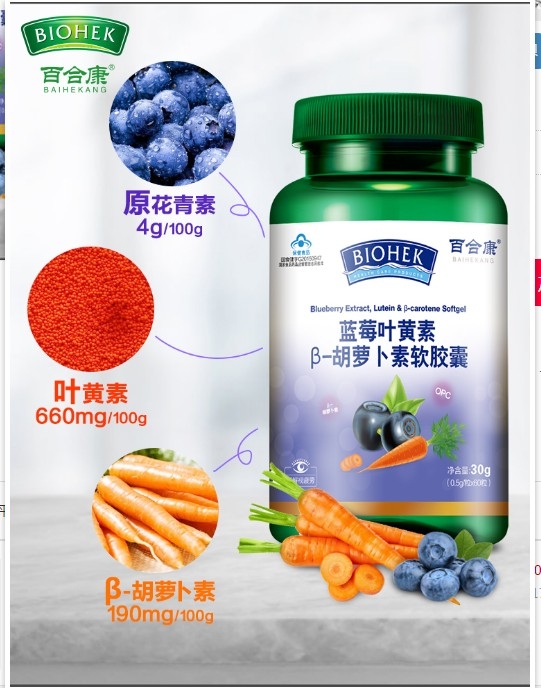 百合康蓝莓叶黄素β胡萝卜素软胶囊