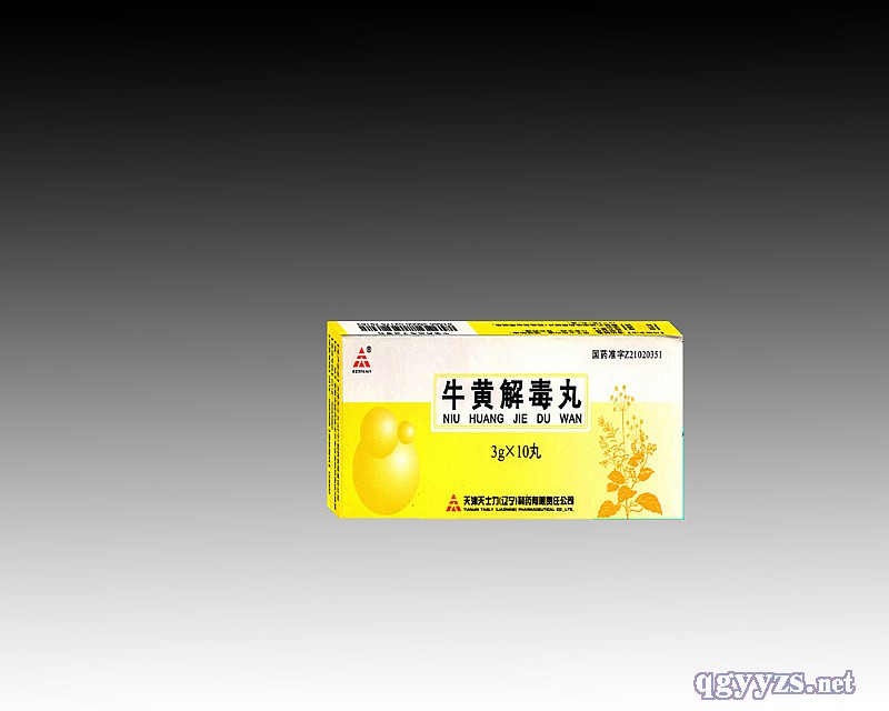 - 人工牛黄、雄黄、石膏、大黄、黄芩、桔梗、冰片、甘草。