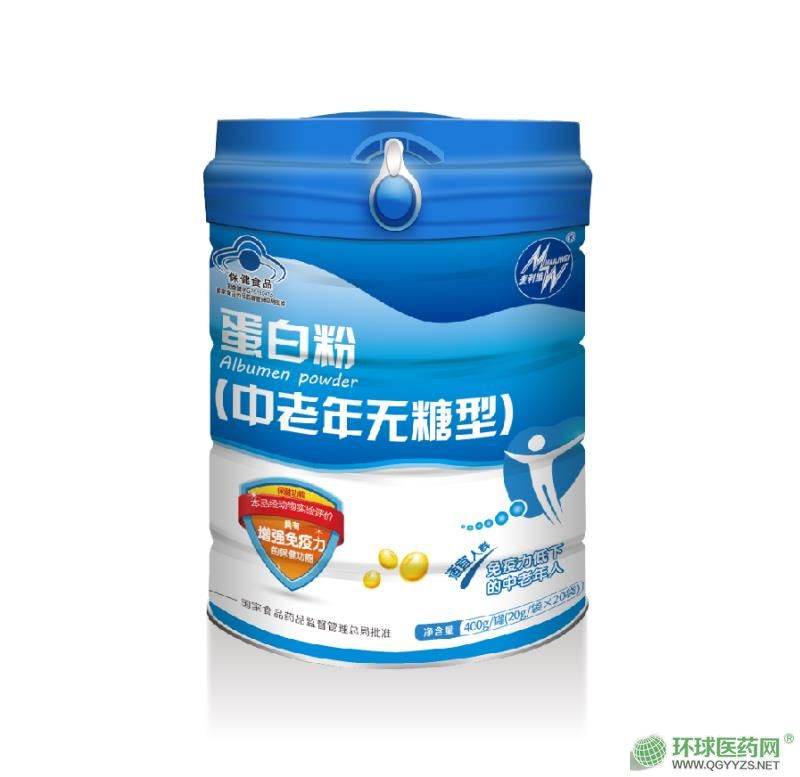 - 一系列四款带蓝帽蛋白粉,含量高、每100g含:蛋白质70g适合免疫力低下的中老年人群、服用方便、每日1次,每次1袋即可