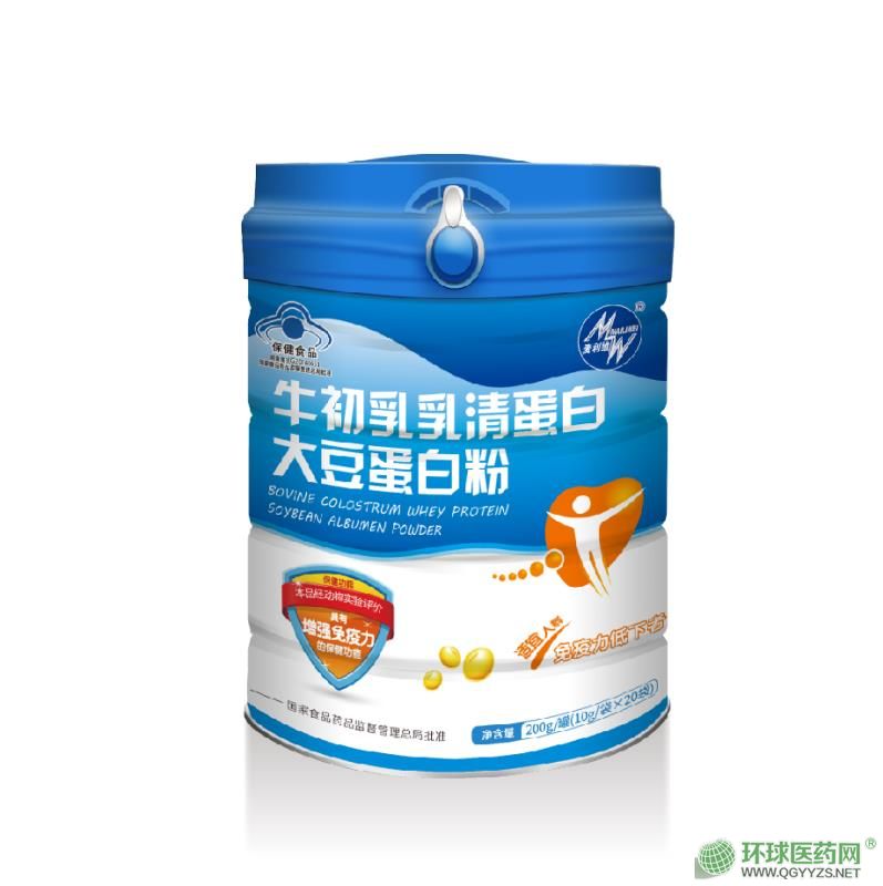 - 本品是以牛初乳粉、乳清蛋白粉、大豆分离蛋白粉、低聚果糖、脱脂奶粉为主要原料制成的保健食品,经动物功能试验证明,具有增强免疫力的保健功能。