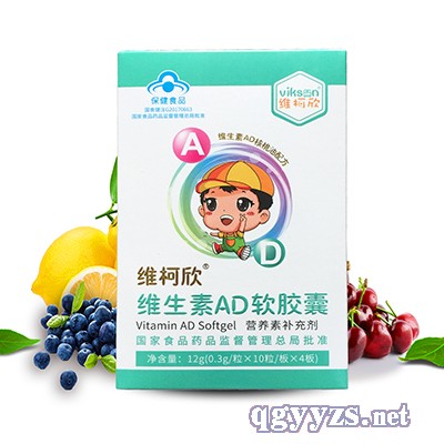 - 维柯欣维生素AD软胶囊(营养补充剂滴剂)是由国家食品药品监督管理总局批准研发生产的维生素AD营养补充剂,补充维生素A、维生素D,富含核桃油同步促进大脑发育,采用42:1的黄金比例,补充维生素ad既安全又有效,适合1-10岁儿童,每天一粒即可。