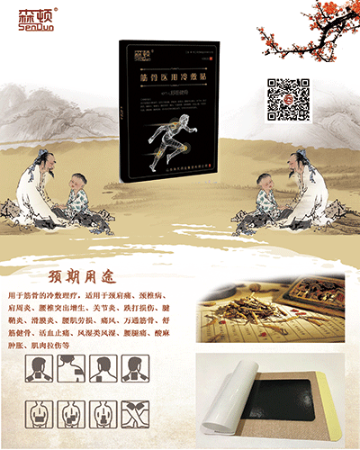 5.森顿筋骨医用冷敷贴运用中医贴敷疗法,剂型先进,缓解疼痛效果好,凝胶层采用纳米萃取技术,渗透力强,可直达病灶,迅速止疼,除血瘀。