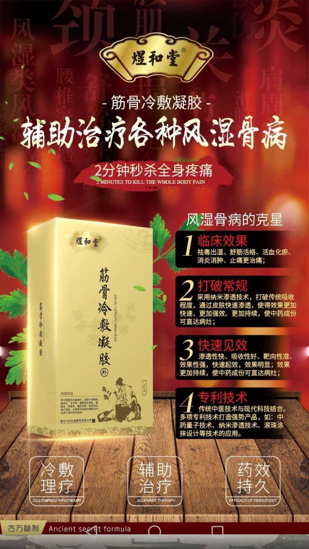 - 用于筋骨的冷敷理疗,适用于颈椎病、肩周炎、关节炎、腰椎突出增生、腱鞘炎、滑膜炎、腰肌劳损、肌肉拉伤、跌打损伤、风湿类风湿等的铺助治疗。