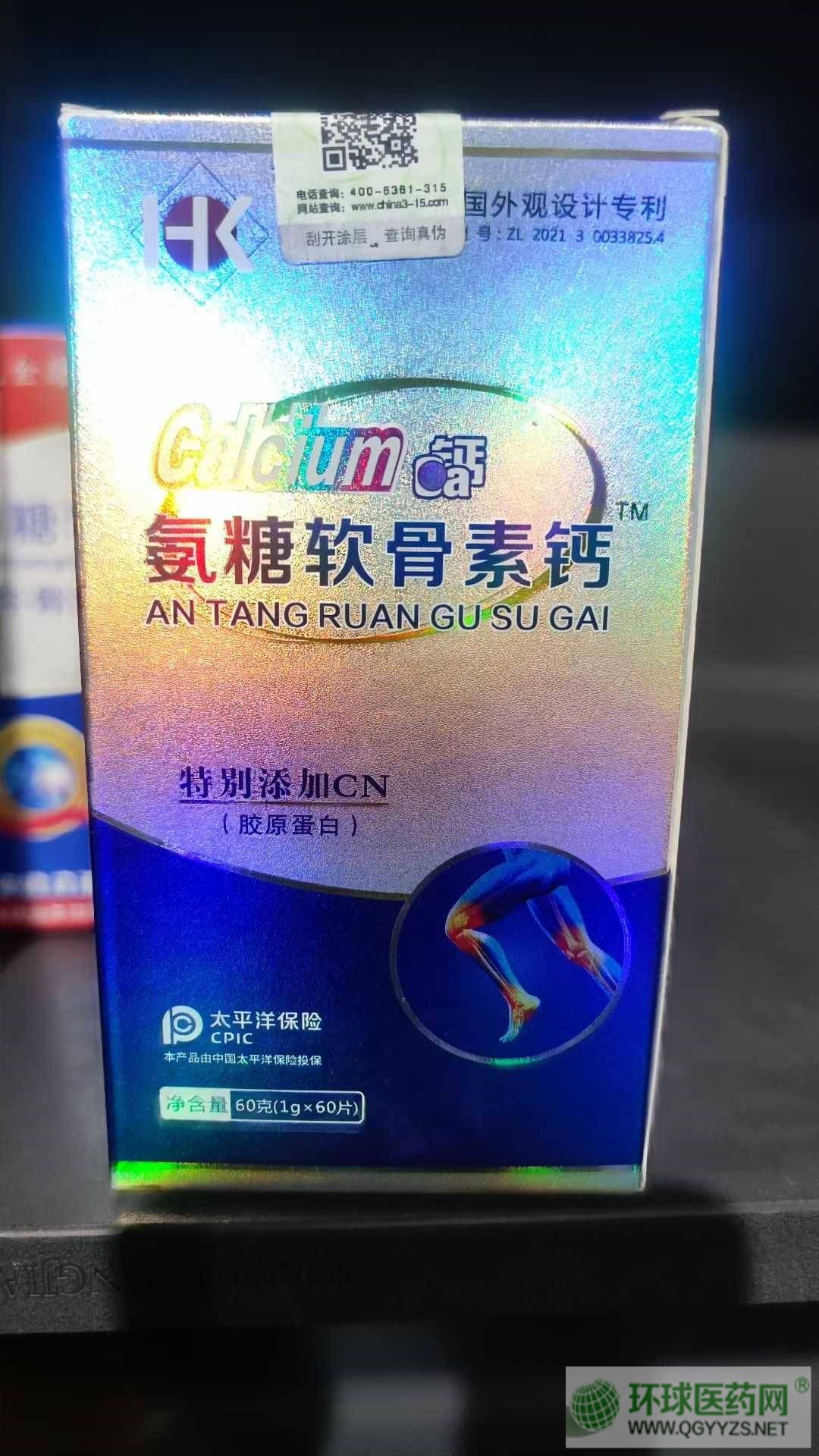 优势:有外观专利保护的氨糖钙片!
