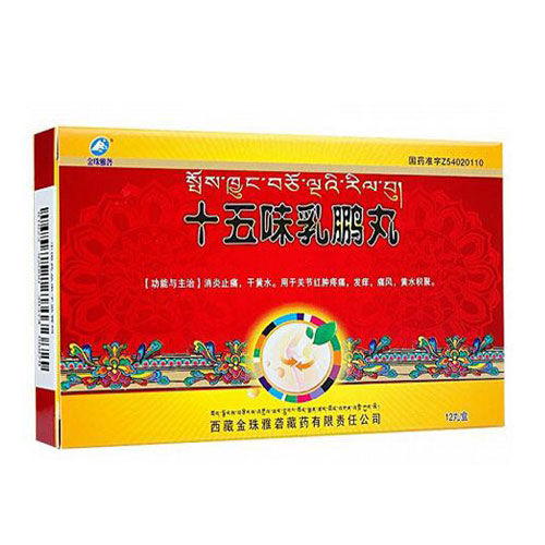 - 十五味乳鹏丸降低尿酸纠正代谢,祛风、除湿、干黄水。用于关节炎、类风湿性关节炎、痛风、痹病引起的四肢关节肿大、变形、黄水聚积等。