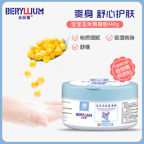 - 沐浴后或需要时,抹干身上水分,用粉扑沾取适量爽身粉轻拍于宝宝肌肤表面,特别是颈部和屁股褶皱处。