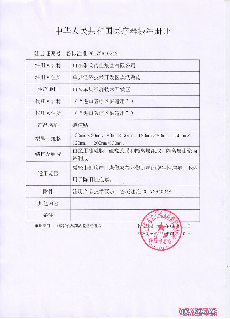 - 适用范围:适用于各种烧伤、手术或外伤后的增生性疤痕、疤痕疙瘩、剖腹产疤痕的预防及治疗