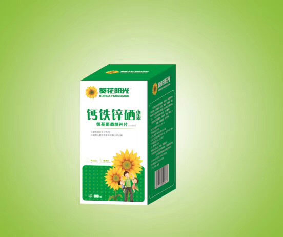 - 葵花阳光钙铁锌硒+维生素氨基葡萄糖钙片产品功效:富含浓度较高的钙铁锌等微量元素。