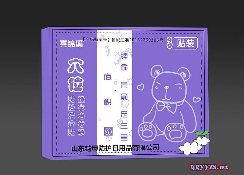 - 详见说明书1、清洁相应穴位,先以拇指依次揉按相应穴位,每次1~2**,范围由小到大。力量由轻到重,探寻敏感点。2、确认包装无破损后,打开包装,取出穴位贴敷治疗贴,将贴剂的隔离膜撕去,以钢珠对准相应穴位敏感点贴压,1片/穴、天,每日适度按压3~5次,每次3~5**,1个疗程为10天,疗程间隔2~3天。