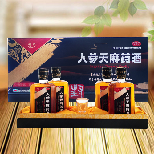 - 天麻、川牛膝、黄芪、穿山龙、红花、人参,辅料为白酒、蔗糖。