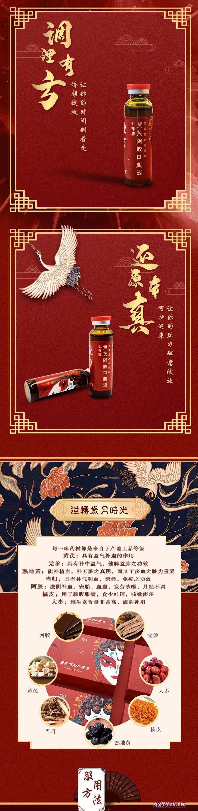 - 产品口服,作用于滋补气血、改善营养性贫血