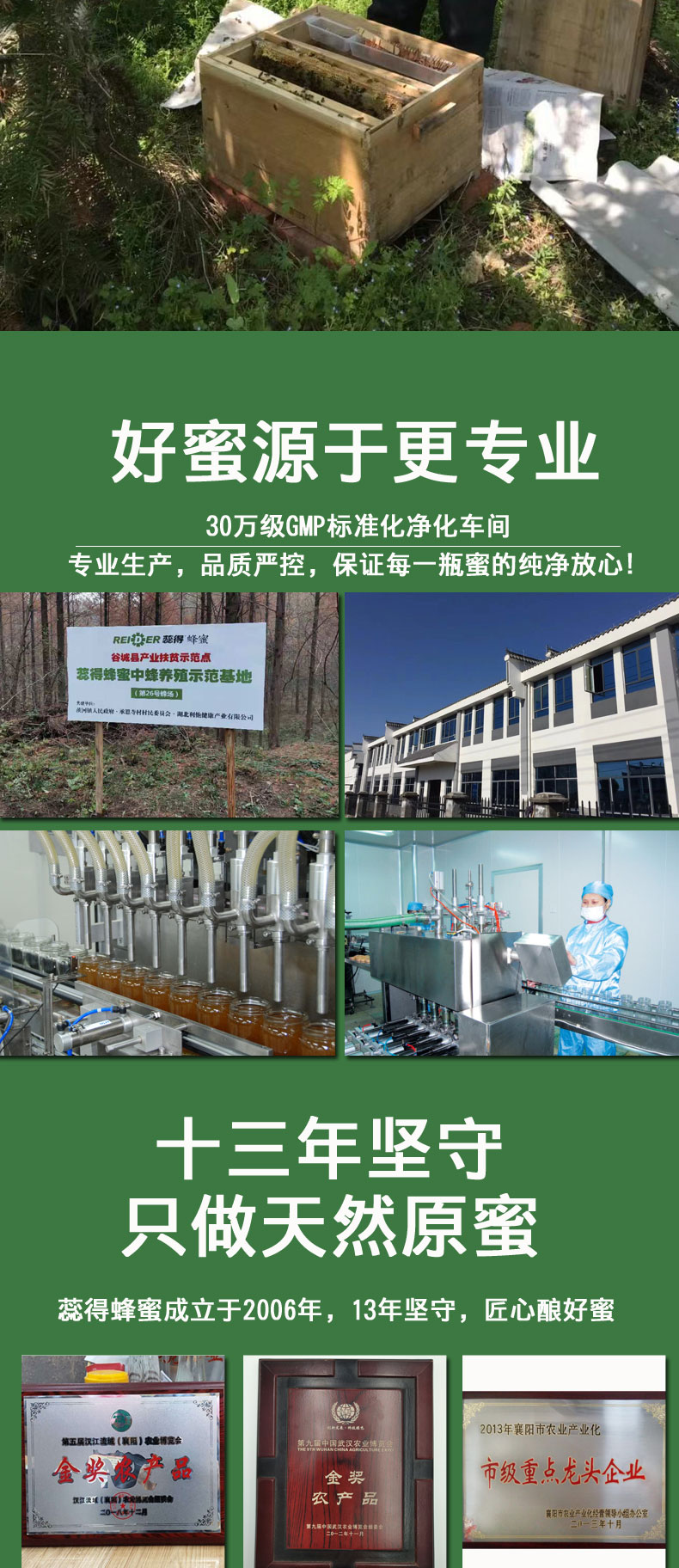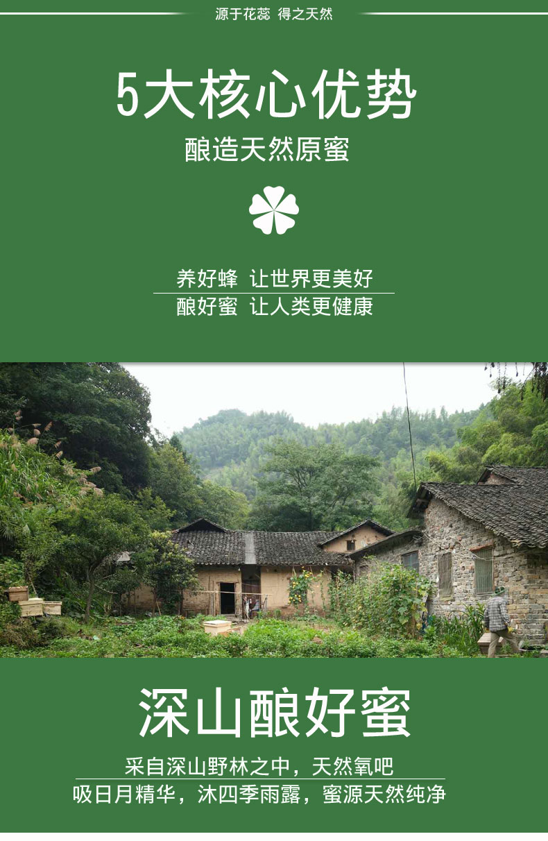 - 1.活性产地蕊得自有蜂场,生态地区采集0添加0污染0农残0抗生素更具活性营养 2.活性酿造小蜜蜂采集并自然酿造,无人为加工,原蜜活性成分经过蜜蜂充分酿造得以释放,活性更丰富。 3.活性灌装低温储存五重过滤低温杀菌保留蜂蜜的各种活性营养物质 活性营养活性酶值高于行业标准多倍,营养成分更丰富更**