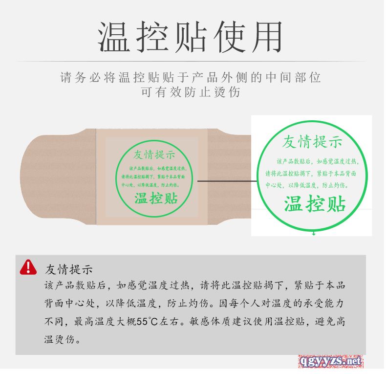- 由远红外陶瓷粉、无纺布、发热袋、永磁片、压敏胶及硅油纸制成。