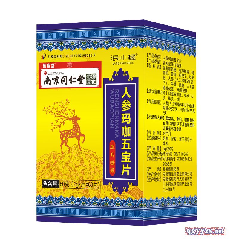 - 玛咖粉,黄精,枸杞子,牡蛎粉,人参(人工种植五年以下),牛鞭,鹿鞭(人工养殖梅花鹿)