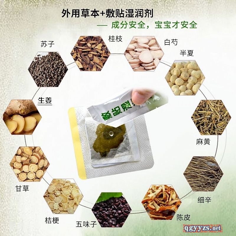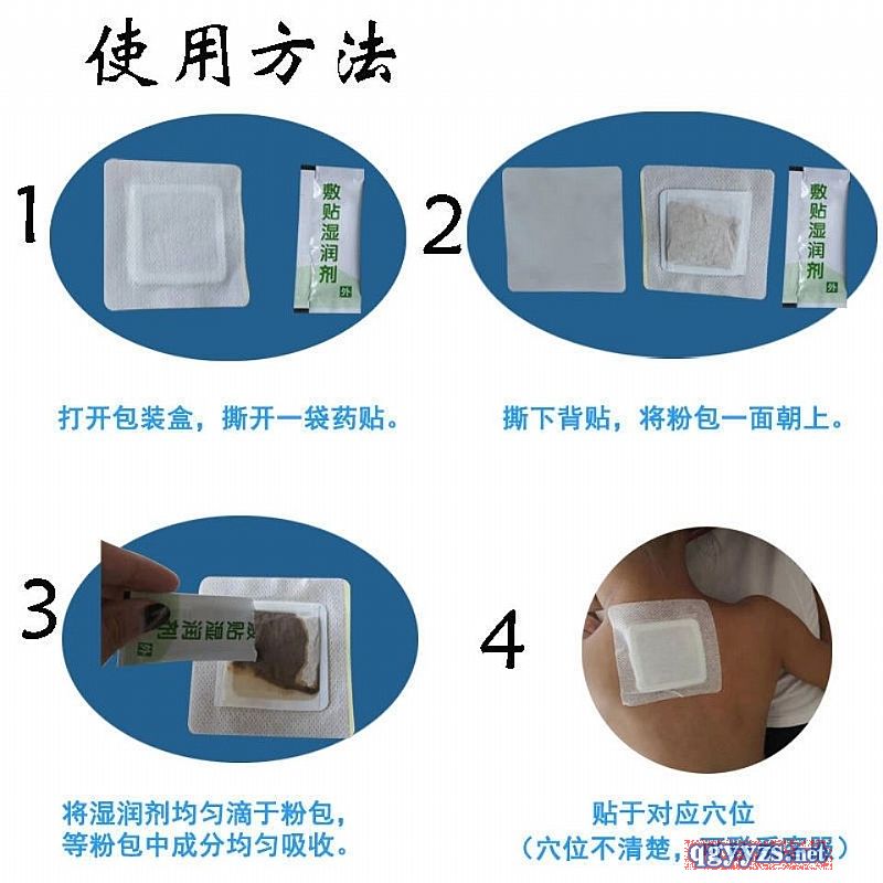 - 将穴位周围清洗干净。待干燥后,揭去本品防粘纸,贴于大椎穴、神阙穴、天突穴、中脘穴。每贴敷6-8小时更换一次。