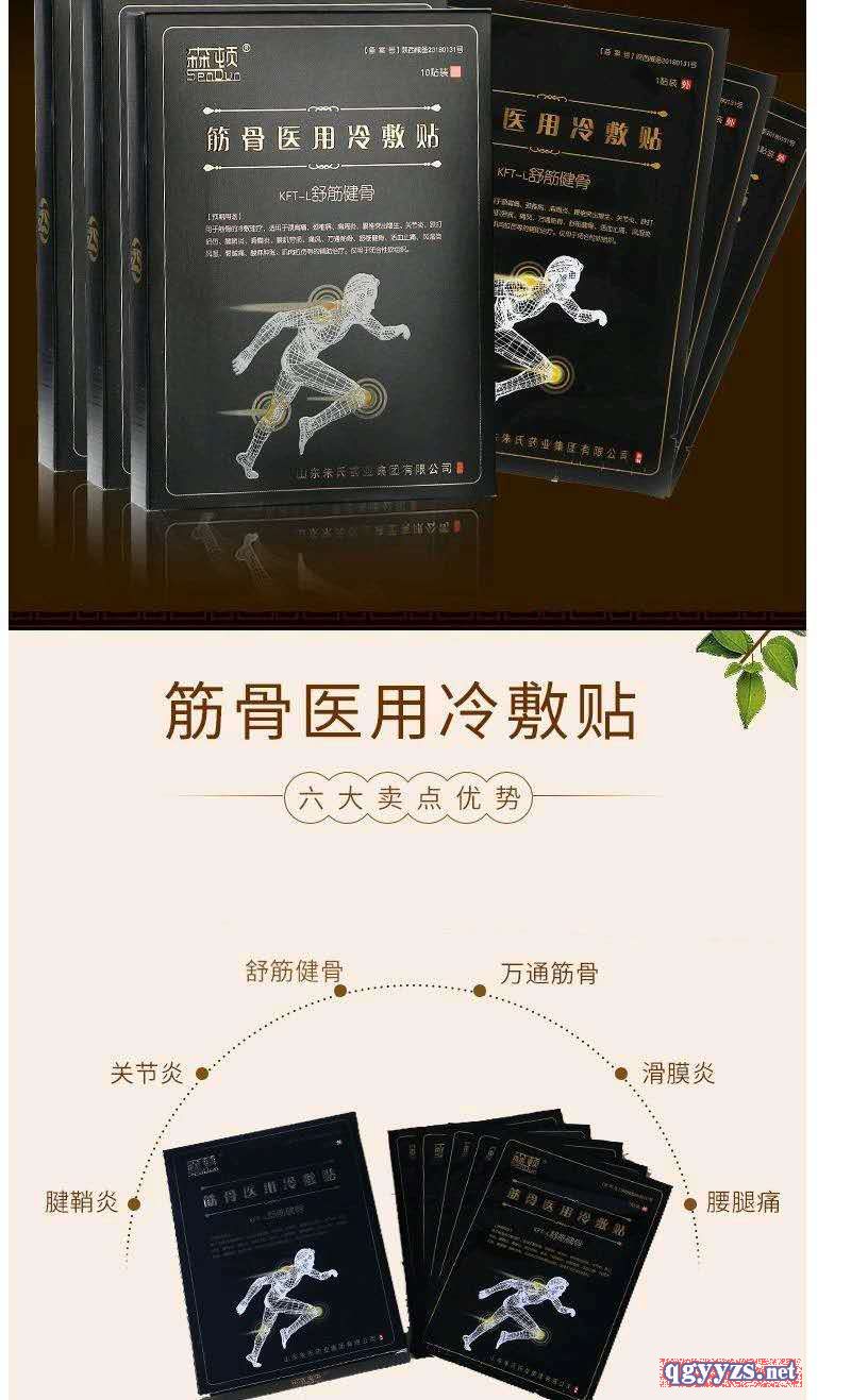 - 用于筋骨的冷敷理疗,适用于颈肩痛、颈椎病、肩周炎、腰椎突出增生、关节炎、跌打损伤、腱鞘炎、滑膜炎、腰肌劳损、痛风、万通筋骨、舒筋健骨、活血止痛、风湿类风湿、腰腿痛、酸麻肿胀、肌肉拉伤等的辅助治疗。仅用于闭合性软组织。