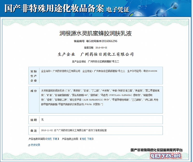 - 水灵肌蜜蜂胶润肤乳液:["水","黄原胶","甘油","丁二醇","卡波姆","辛酸/癸酸甘油三酯","角鲨烷","聚二甲基硅氧烷","矿油","甘油硬脂酸酯","聚山梨醇酯-60","甜菜碱","马齿苋(PORTULACAOLERACEA)提取物","蜂蜜提取物","香精","甘草酸二钾","库拉索芦荟(ALOEBARBADENSIS)叶汁"。