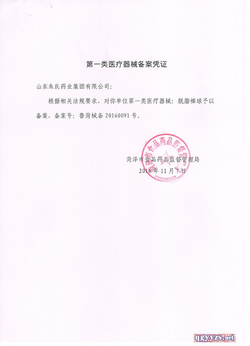 山东朱氏药业集团脱脂棉球