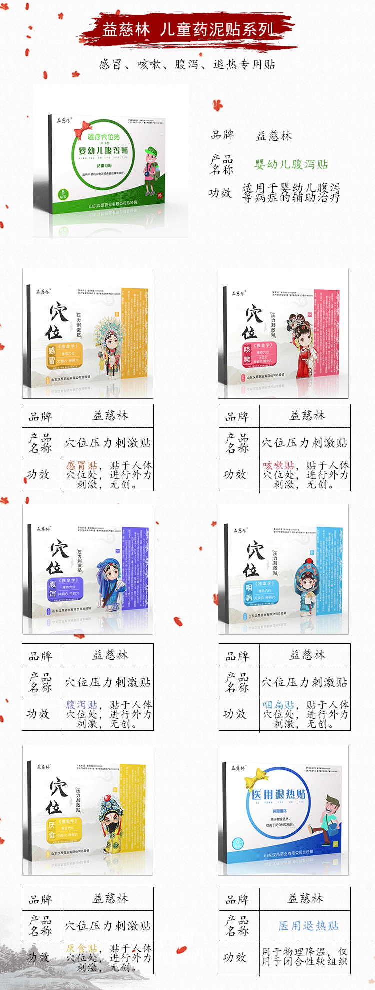 4.儿科产品有:腹泻贴、感冒贴、止咳贴等(贴牌加工、代理,利润丰厚)