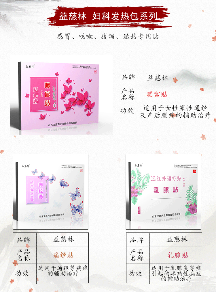 3.妇科产品有:暖宫贴、痛经贴、乳腺贴等(贴牌加工、代理,利润丰厚)