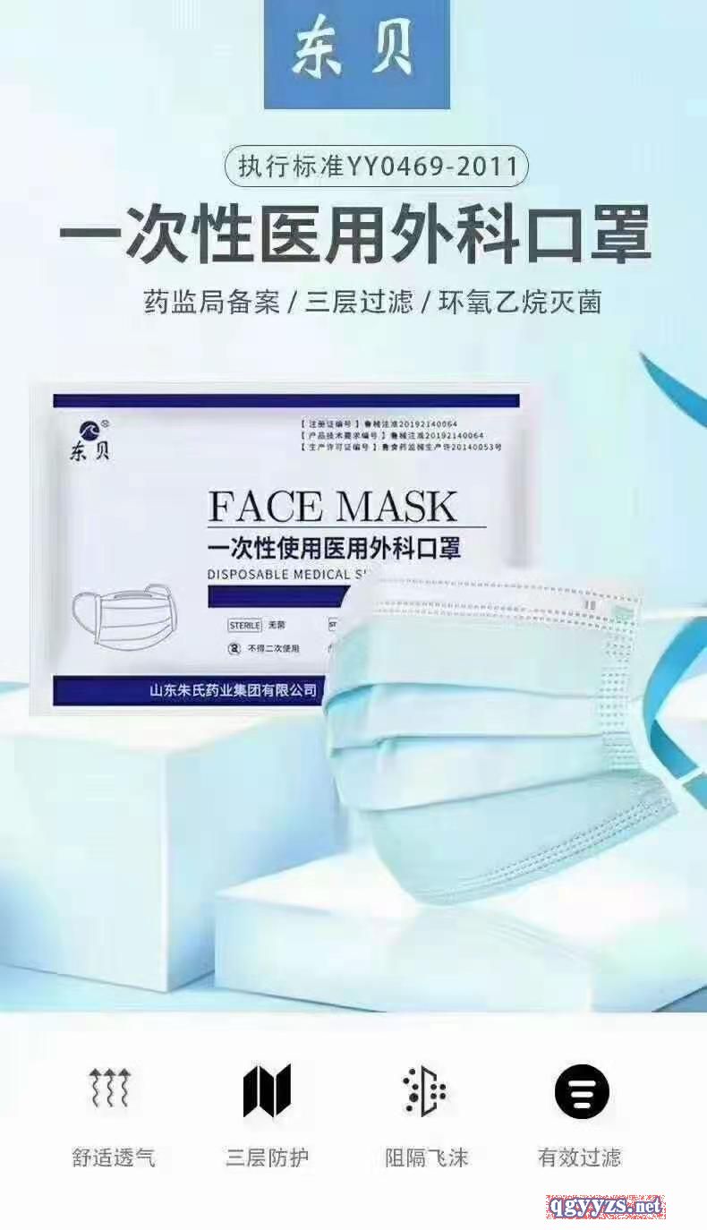 - 朱氏东贝医用外科口罩十大优点:1.国际医用标准蓝(方便出口,全球通用)2.**层为3S无纺布,普通民用和医用用的是1S和2S。 3.第三层3S亲服无纺布,减少人体刺激。4. 95+级熔喷布(口罩心脏)5.圆形耳带(非方形)减少刺激,增加舒适度 6. 全塑鼻梁条(不含铁丝)避免对人体造成意外伤害 7. 包装袋为一次性使用,避免二次使用 8.不含包装盒,增加利用空间,降低运费。9. 血贱速度120达标,我们的达到160 10.二类医疗器械文号,直供医院,医生和护士专用产品,防病毒