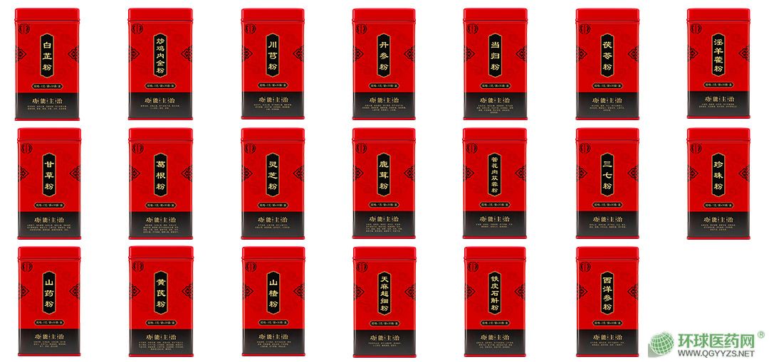- 产品共有20个,分别包括:白芷粉、炒鸡内金粉、丹参粉、甘草粉、黄芪粉、鹿茸粉、肉苁蓉粉、三七粉、山楂粉、天麻超细粉、西洋参粉、珍珠粉、淫羊藿粉、当归粉、灵芝粉、山药粉、茯苓粉、葛根粉、川芎粉、铁皮石斛粉。