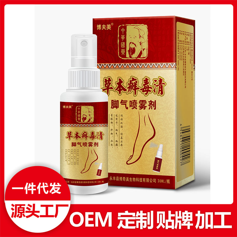 - 狼毒、金针松、黄柏、百部、苦参、地肤子、蛇床子、乌蛇、冰片、薄荷脑等中药成分萃取的草本植物精华及醋酸洗必泰、氮酮等皮肤抑菌剂、渗透剂