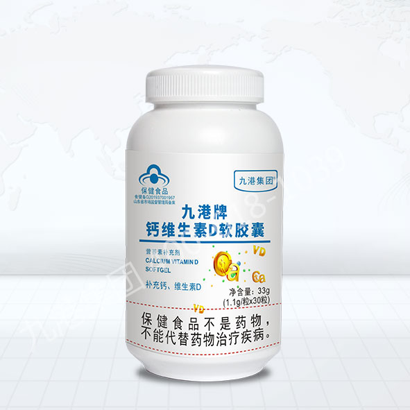 - 【产品名称】九港牌钙维生素D软胶囊