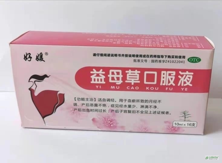 - 益母草口服液,中成药名。由益母草组成。具有活血调经的功效。用于血瘀所致的月经不调、产后恶露不绝,症见月经量少、淋漓不尽、产后出血时间过长;产后子宫复旧不全见上述证候者。