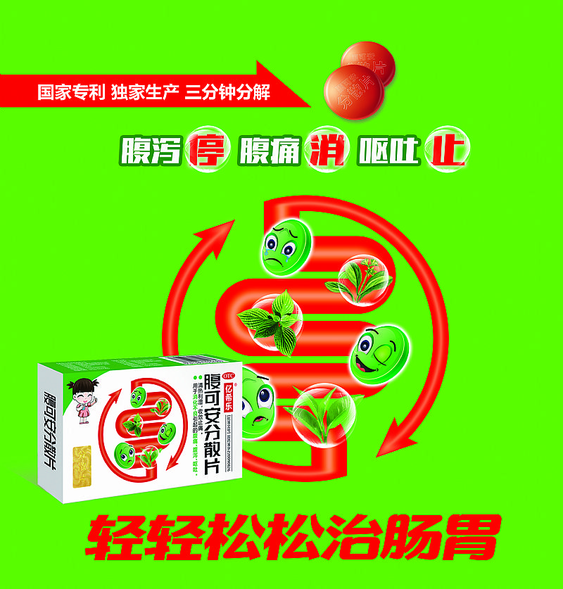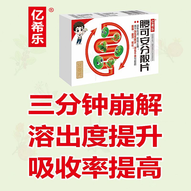 亿希乐腹可安分散片、专利品种、黄金单品