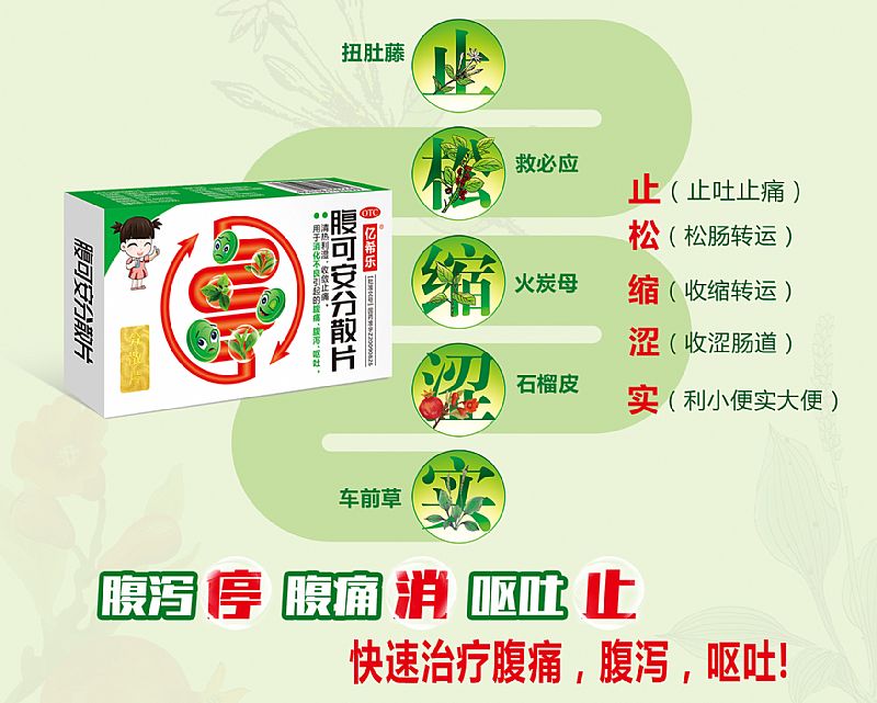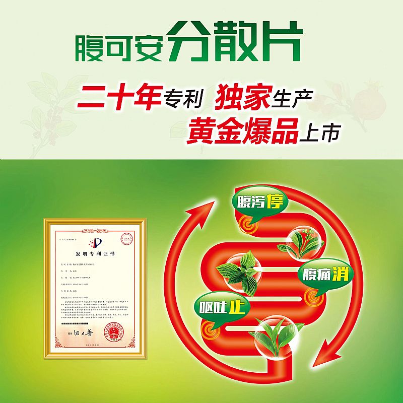 - 具有清热利湿,收敛,止痛的功效。用于急性胃肠炎、消化不良引起的腹痛、腹泻、呕吐。中成药分散片的用药优势;溶出度的提升,胃肠吸收率提高,使得药物有效成份吸收完全,同时缩短了药物作用时间,有效的减少疾病对患者身体的损伤和带来痛苦。