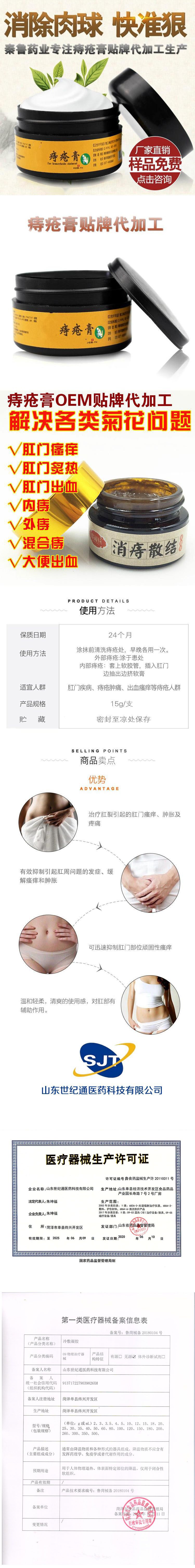 舜师肛痔冷敷凝胶(痔疮膏)OEM加工贴牌